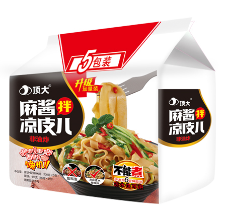 頂大麻醬味拌涼皮兒五包裝發(fā)布日期:2022-09-29 口味:麻醬味 凈含量:面餅+配料600克(120克*5包) 面餅:425克(85克*5包) 規(guī)格:(120克*5包 )*12 保質期:九個月