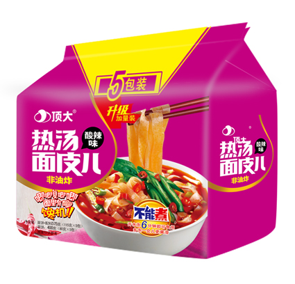 頂大熱湯面皮兒 酸辣味五包裝發(fā)布日期:2022-09-29 口味:酸辣味 凈含量:面餅+配料575克(115克*5包) 面餅:400克(80克*5包) 規(guī)格:(115克*5包 )*12 保質期:九個月